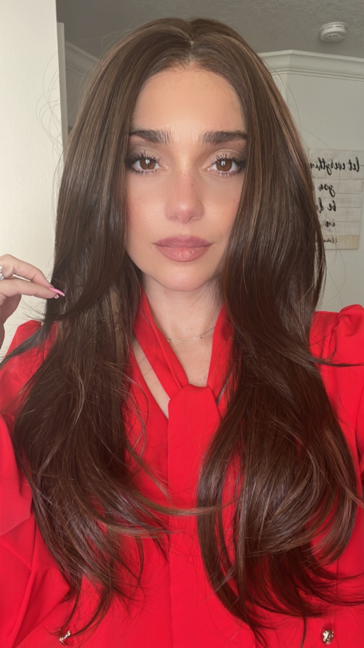 Introducing the stunning EllaRae Antionette Style Wig – your ultimate solution for a quick and stylish hair transformation. This beautifully crafted wig is designed in a sophisticated dark brown color with highlights, featuring a Straight, Long cut complemented by layers that frame the face elegantly.