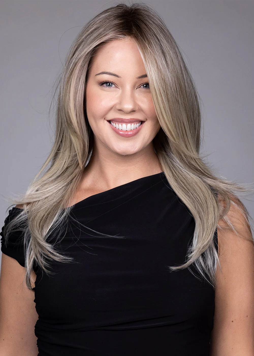 Spears is designed with an extended lace front for a seamless, natural-looking hairline and off-the-face styling flexibility. The full monofilament, hand-tied cap provides multi-directional parting, a realistic scalp appearance, and lightweight comfort. The fully hand-tied construction allows the hair to move naturally and comfortably throughout the day.