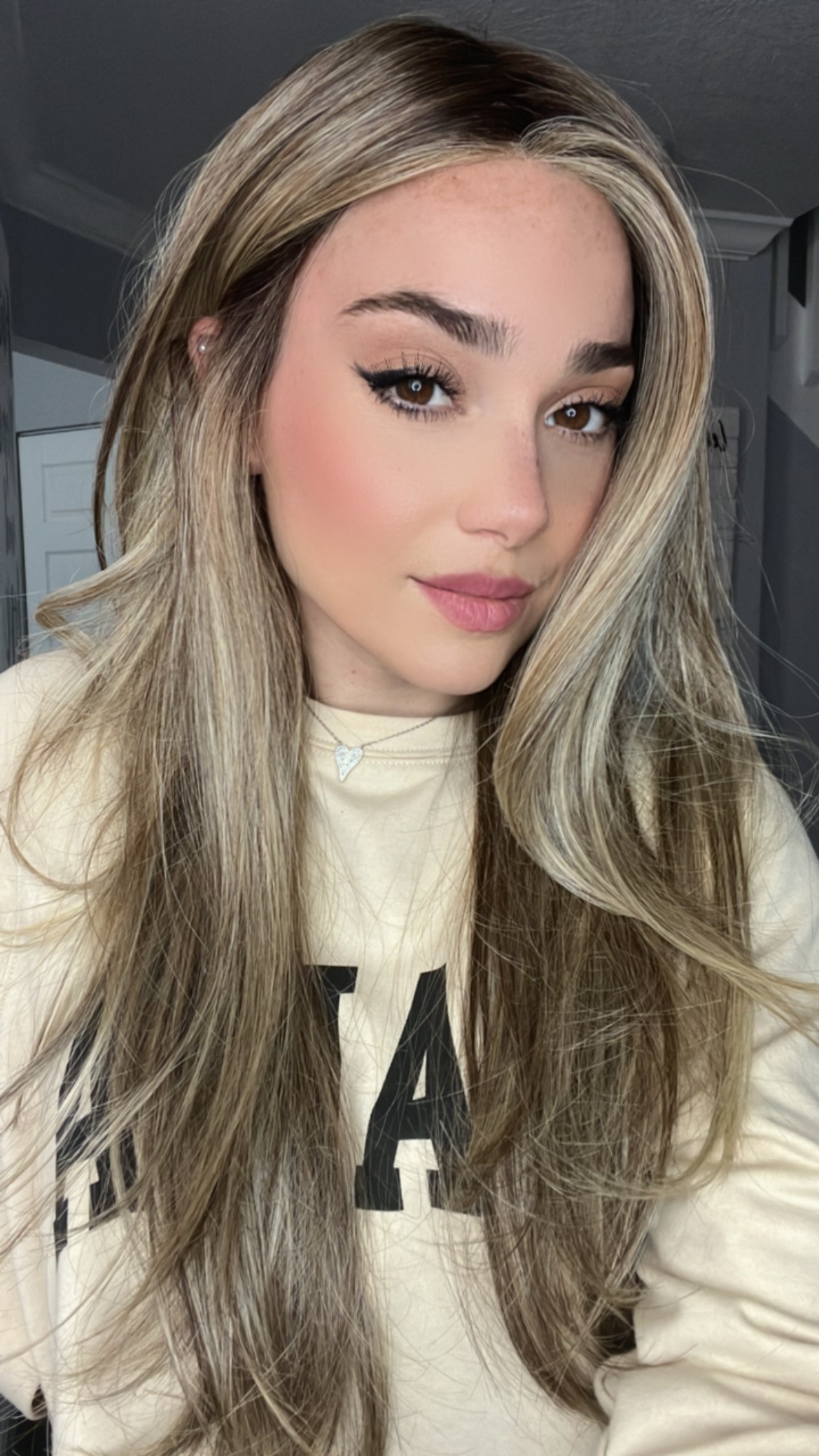EllaRae | Charlotte-Honey Almond | Long Lace Front Straight Layered Bronde Highlighted Wig