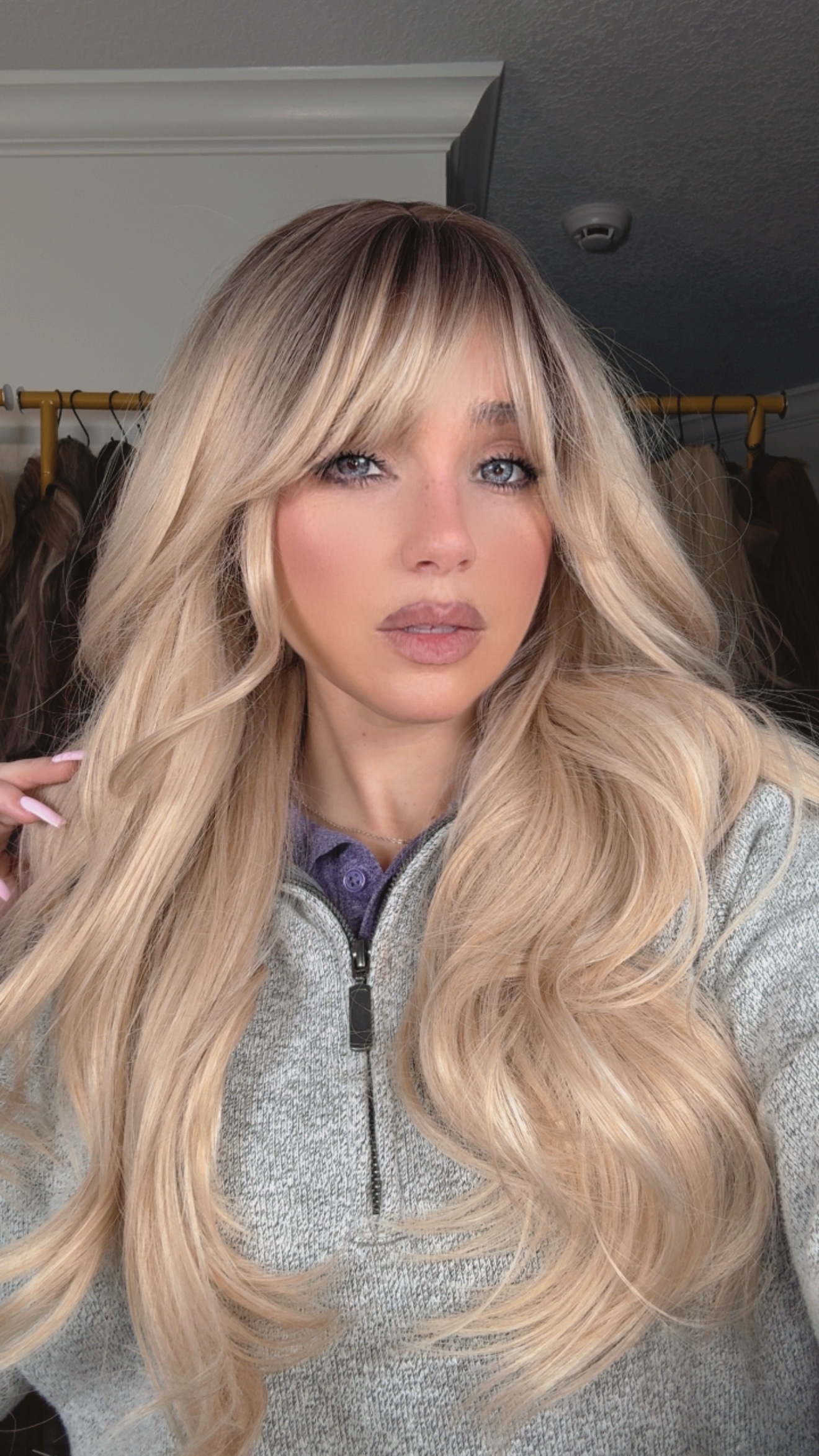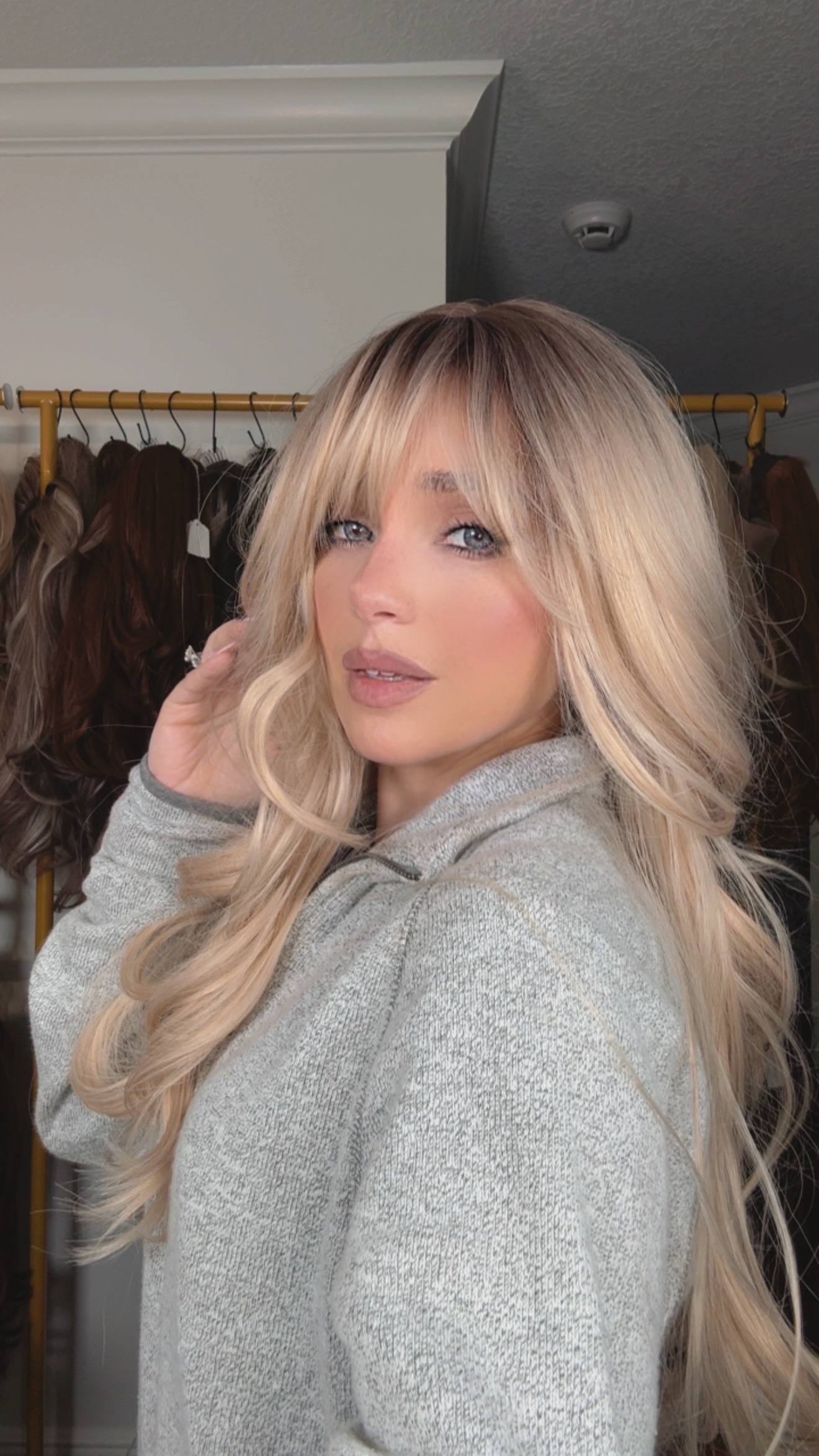 Introducing the stunning EllaRae Analise Style Wig – your ultimate solution for a quick and stylish hair transformation. She is designed in a sophisticated Blonde color , featuring a wavy, long length cut complemented by layers and bangs that frame the face elegantly.