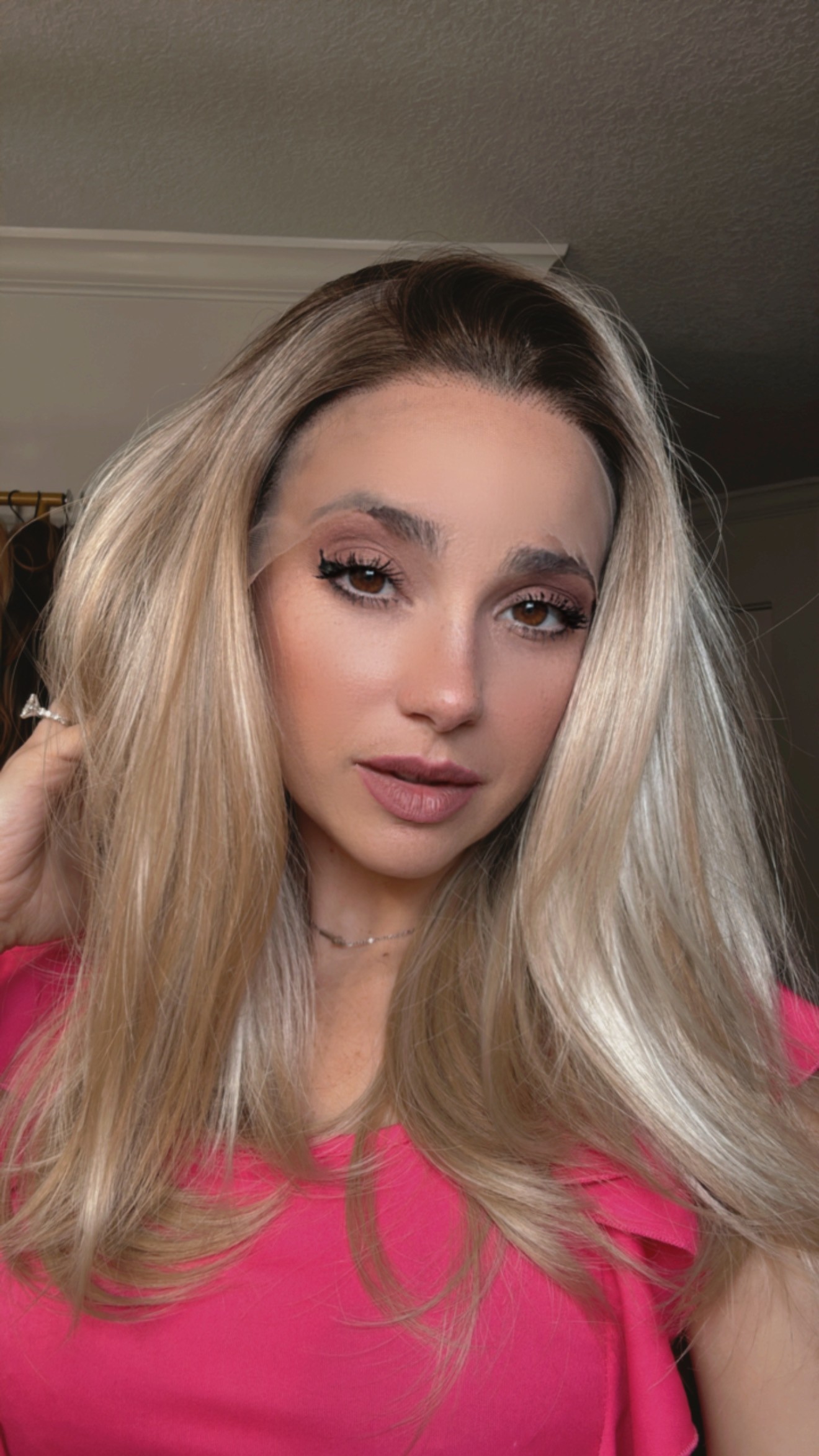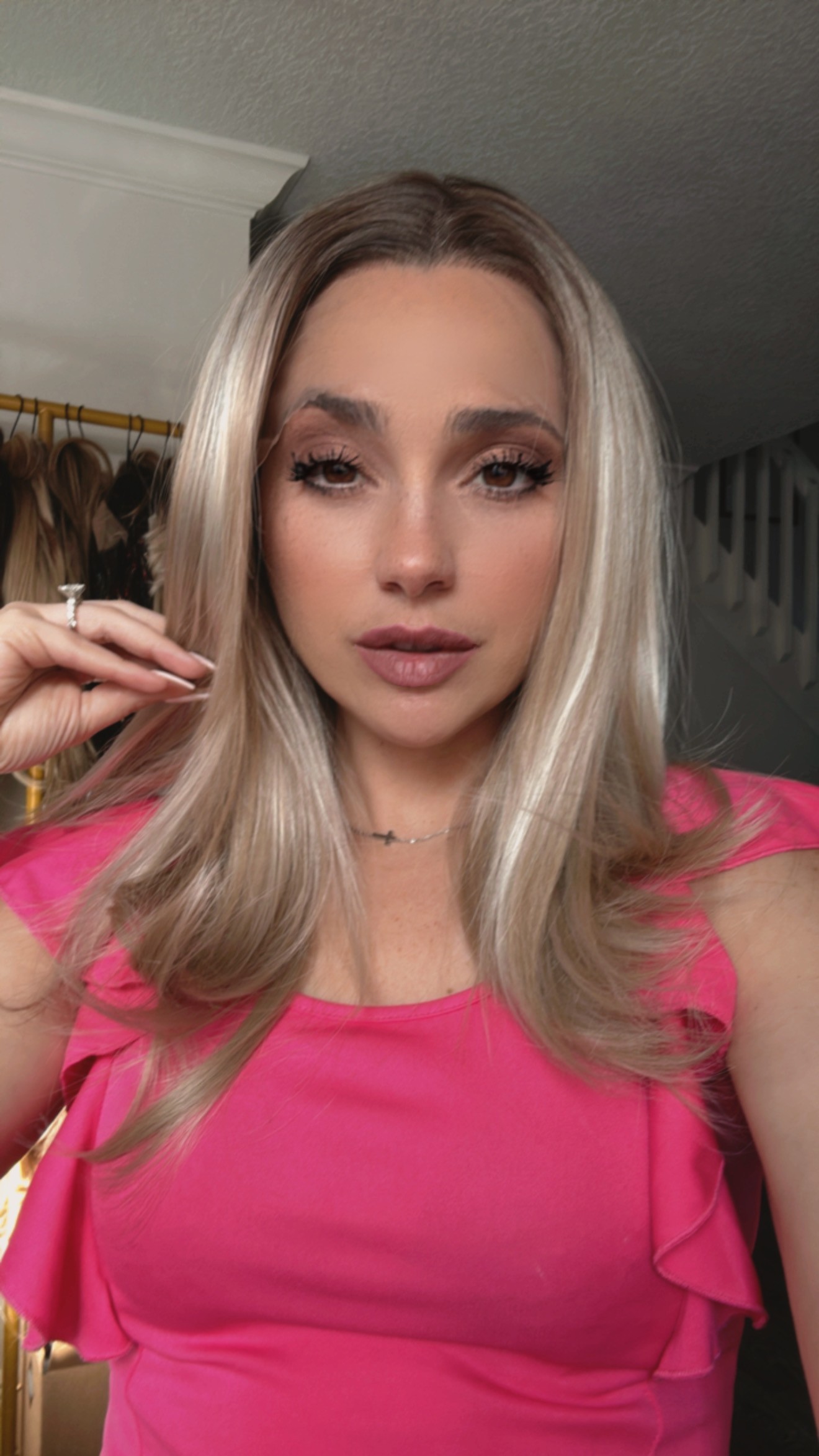 Introducing the stunning EllaRae Gianna Style Wig – your ultimate solution for a quick and stylish hair transformation. She is designed in a sophisticated blonde with highlights, featuring a mid- length cut complemented by layers that frame the face elegantly.
