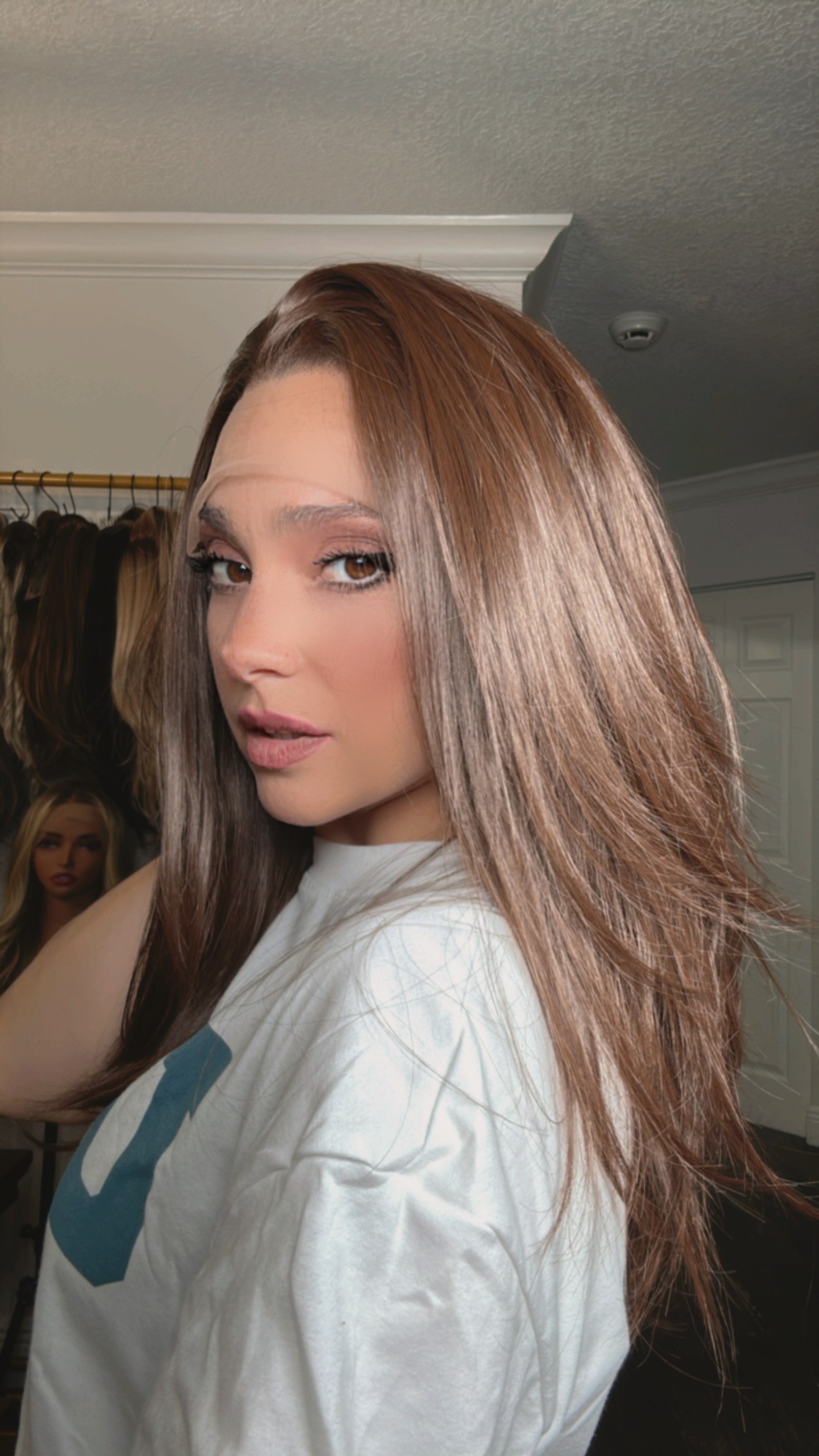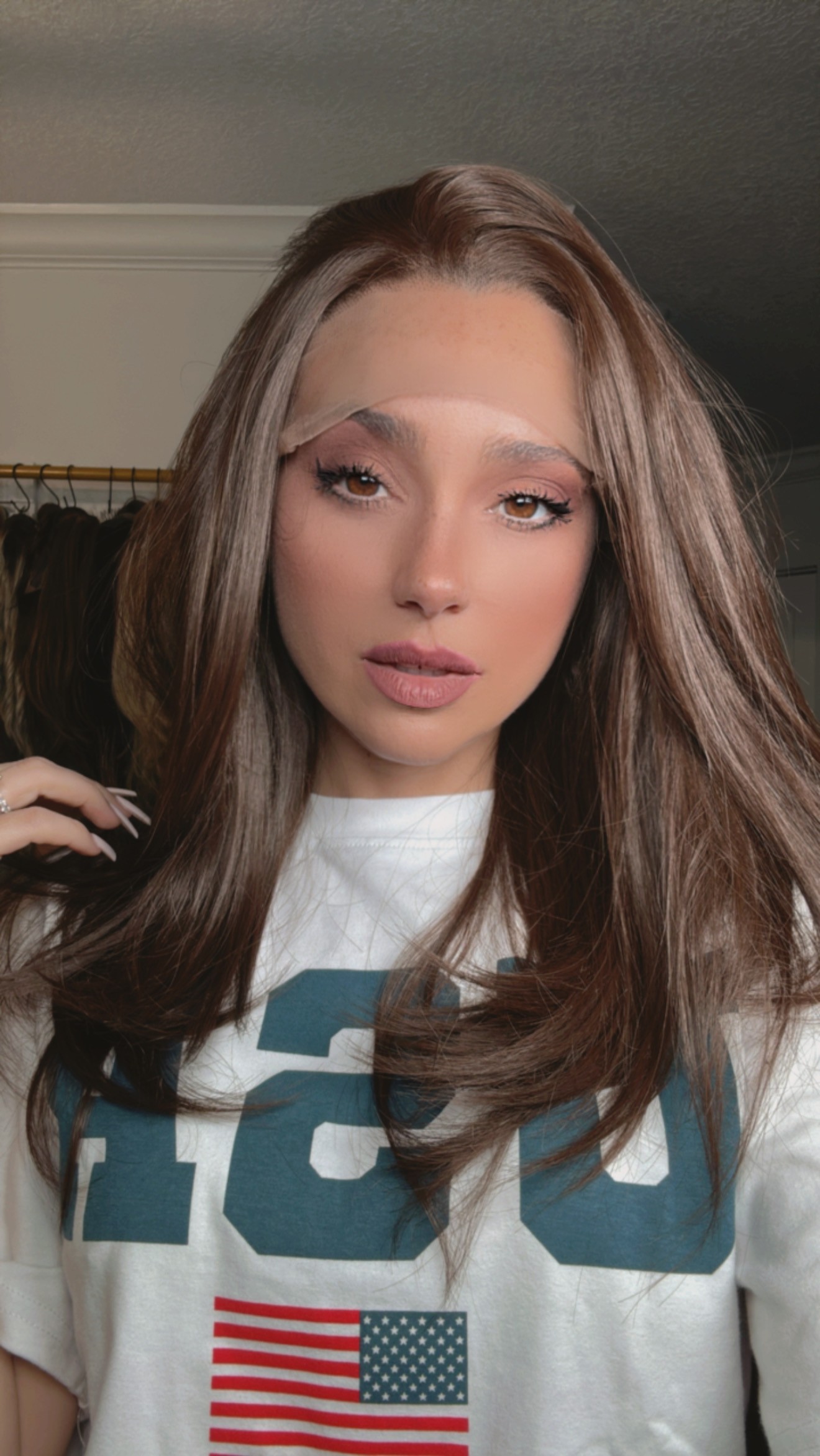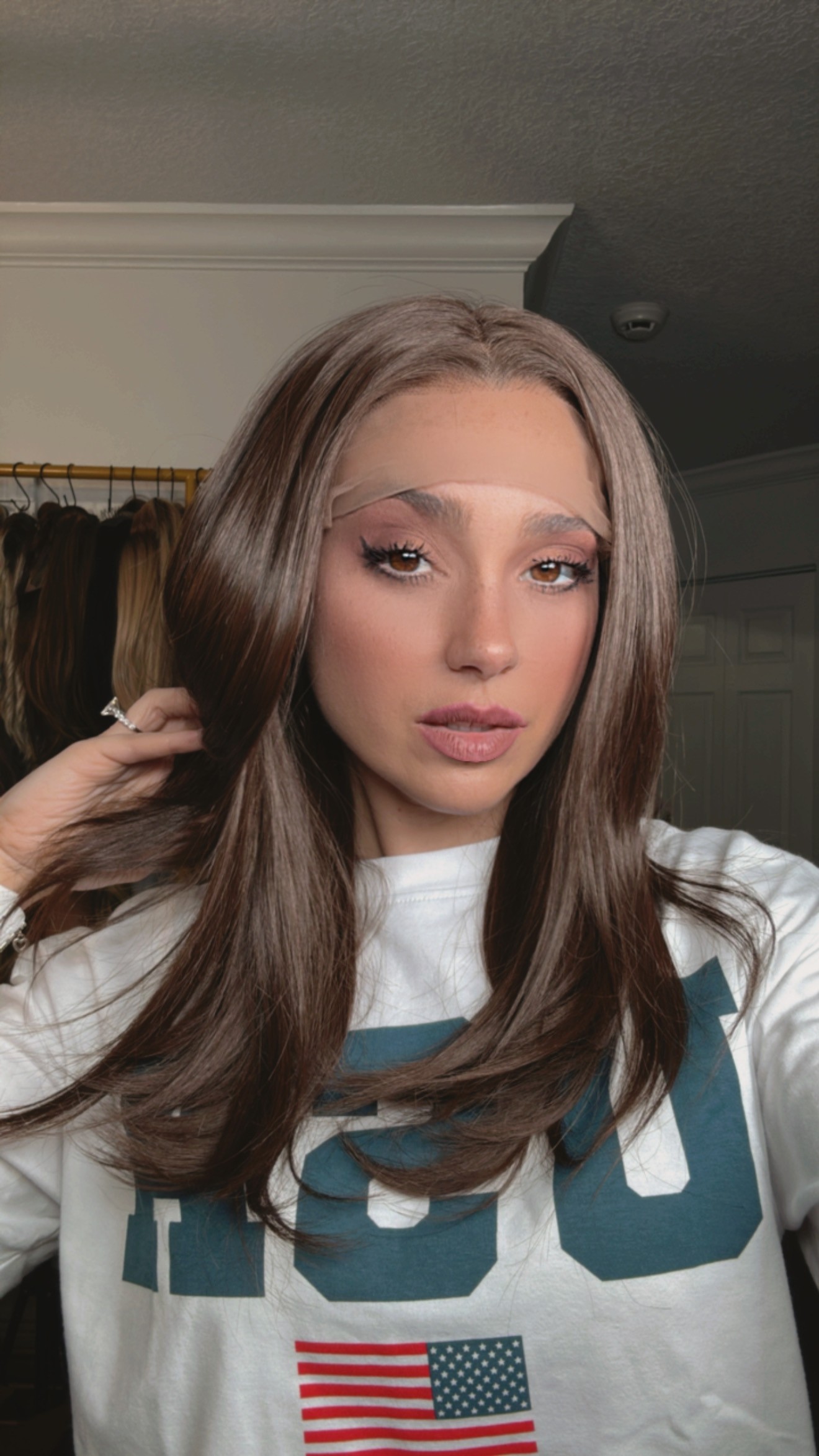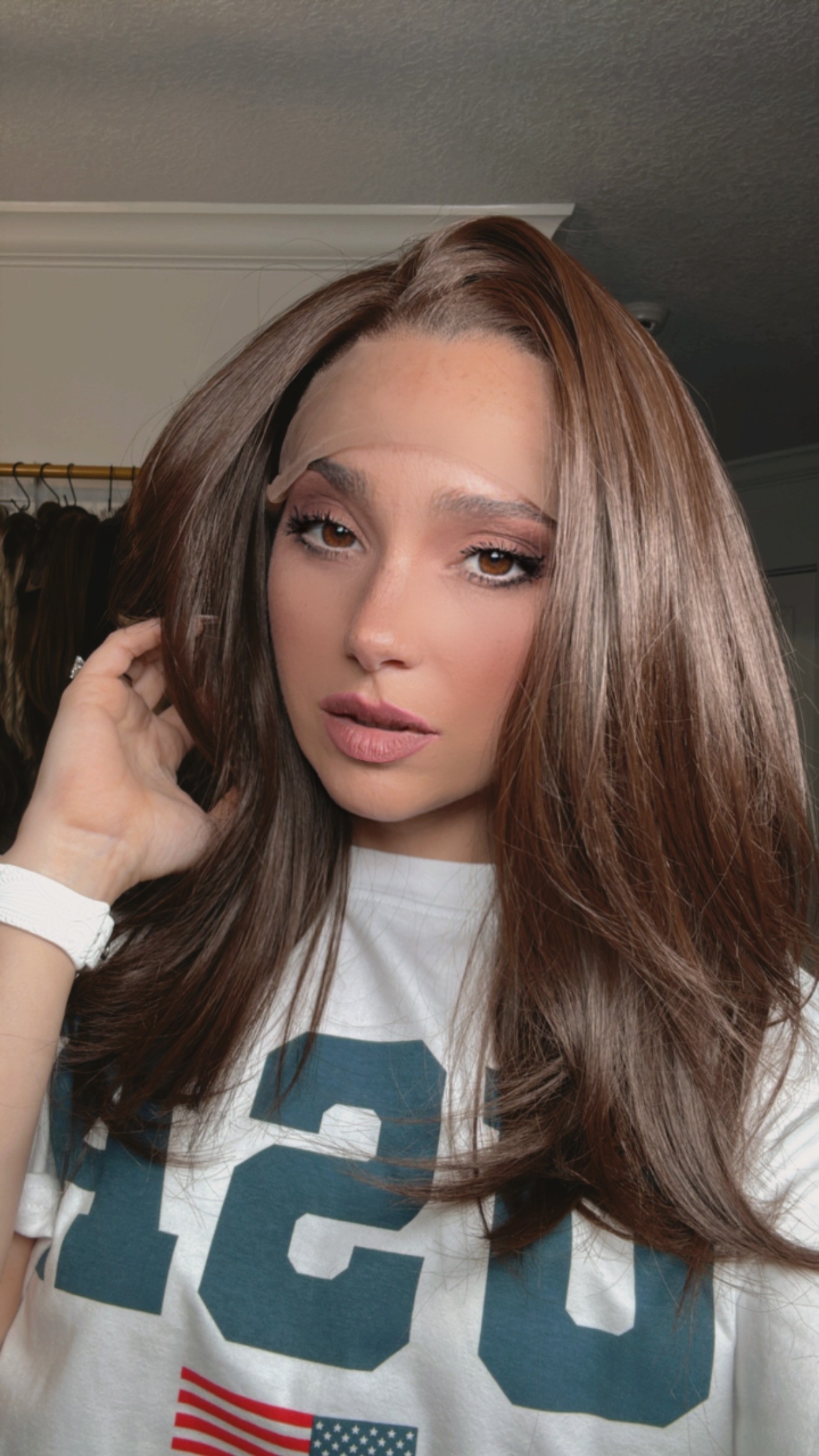 Introducing the stunning EllaRae Gianna Style Wig – your ultimate solution for a quick and stylish hair transformation. She is designed in a sophisticated Dark brown, featuring a mid- length cut complemented by layers that frame the face elegantly.