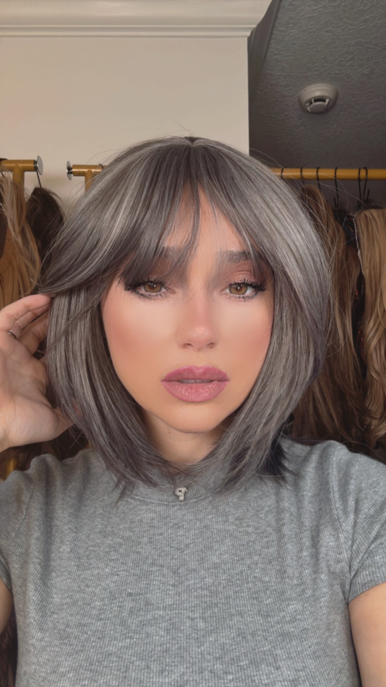 Introducing the stunning EllaRae Ryan Style Wig – your ultimate solution for a quick and stylish hair transformation. This beautifully crafted wig is designed in a sophisticated salt and pepper featuring a straight, above the shoulder cut complemented by chic bangs that frame the face elegantly.