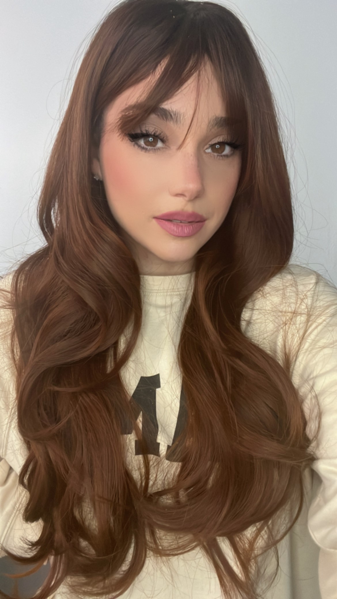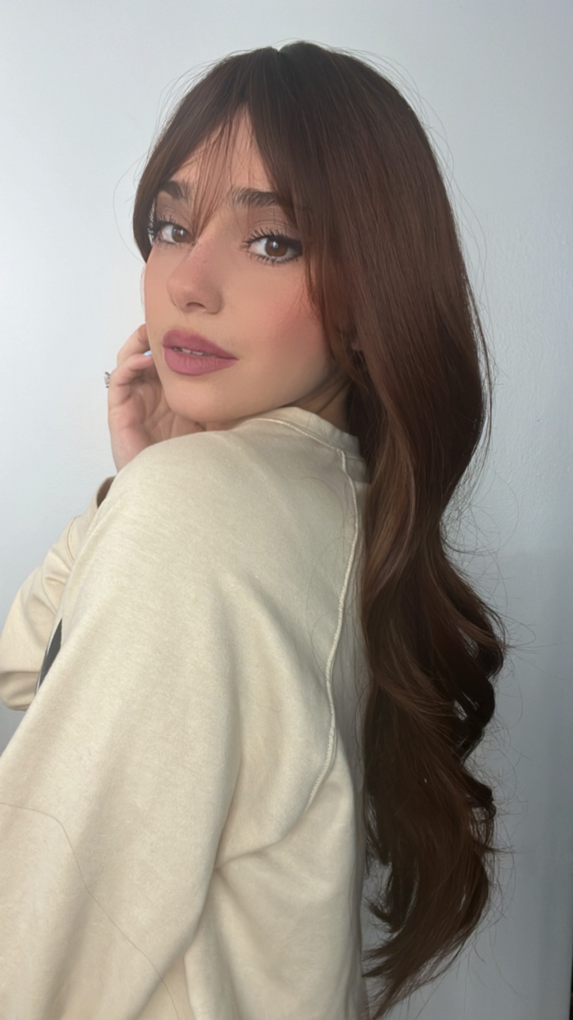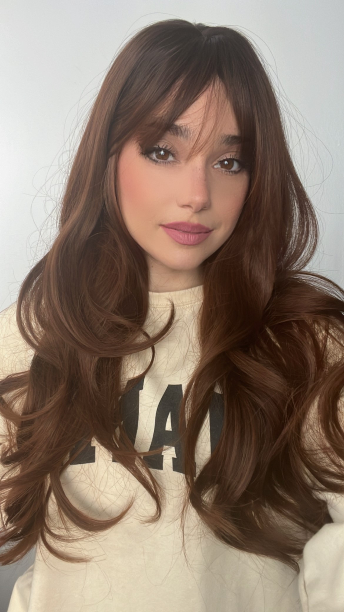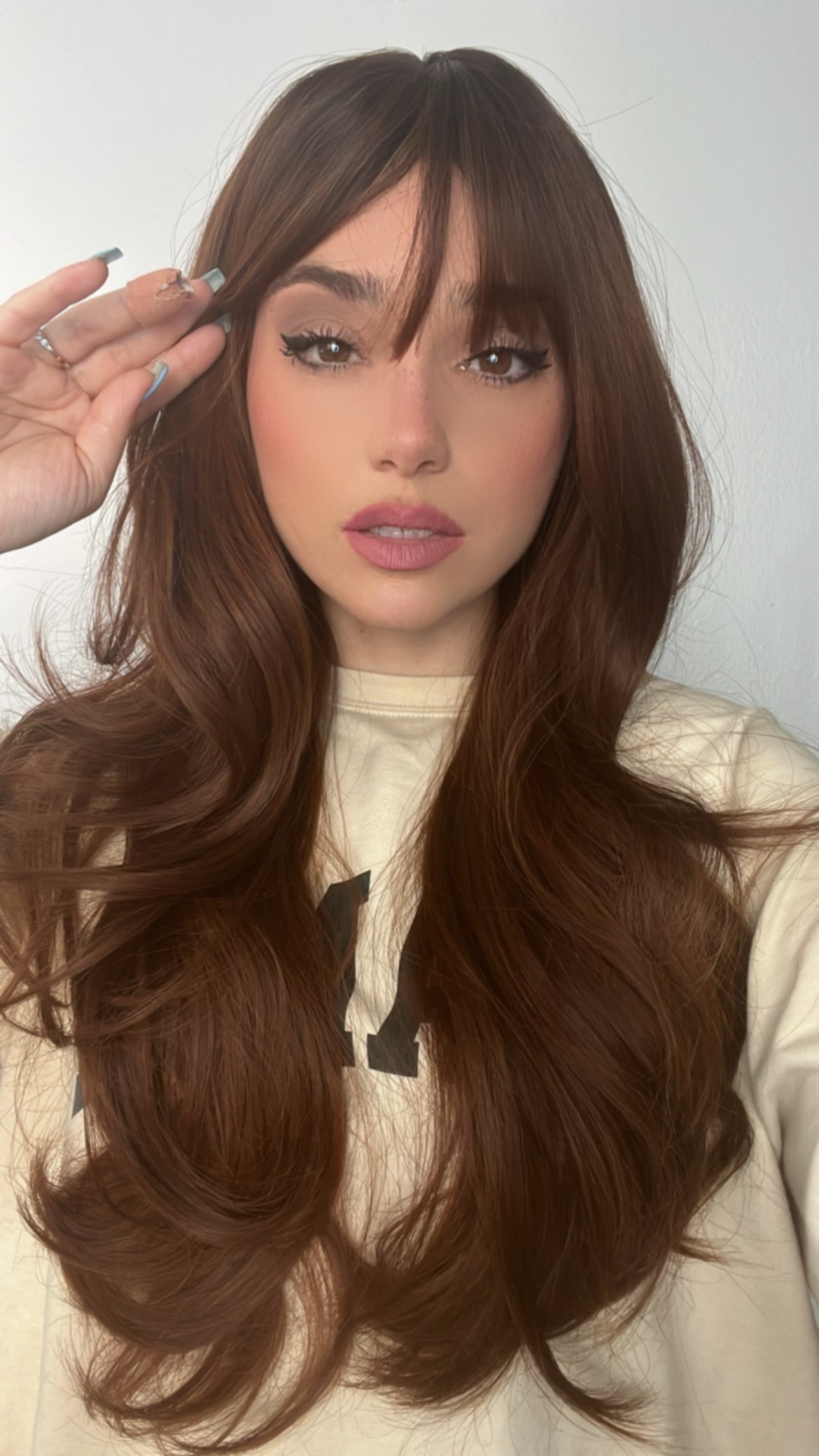 Introducing the stunning EllaRae Mia Style Wig – your ultimate solution for a quick and stylish hair transformation. This beautifully crafted wig is designed in a pretty Auburn red brown color, featuring a body wave, long -length layered cut complemented by chic bangs that frame the face elegantly.