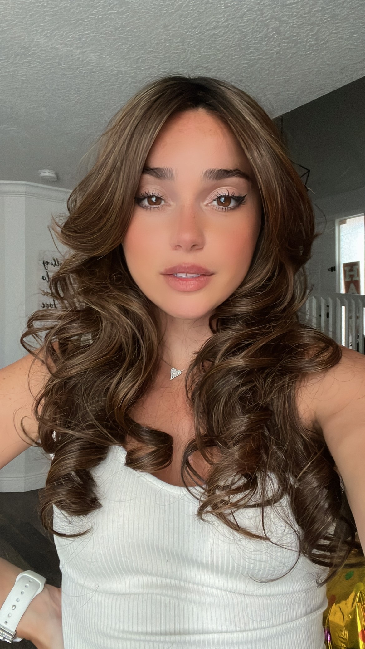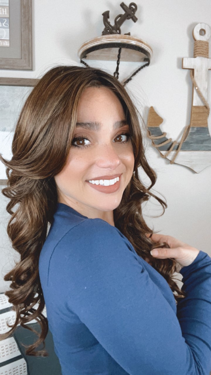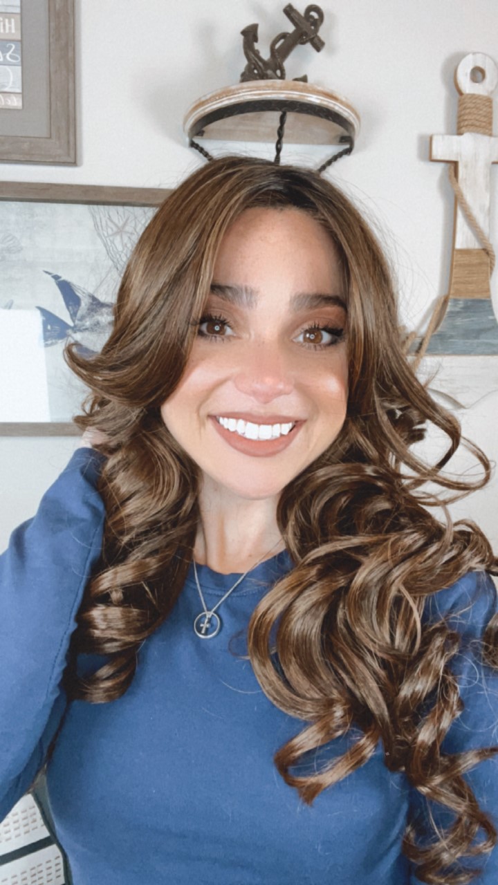 Introducing the stunning EllaRae Penelope Style Wig – your ultimate solution for a quick and stylish hair transformation. She is designed in a sophisticated chocolate brown with highlights, featuring beautiful barrel curls, long length cut complemented by layers that frame the face elegantly.