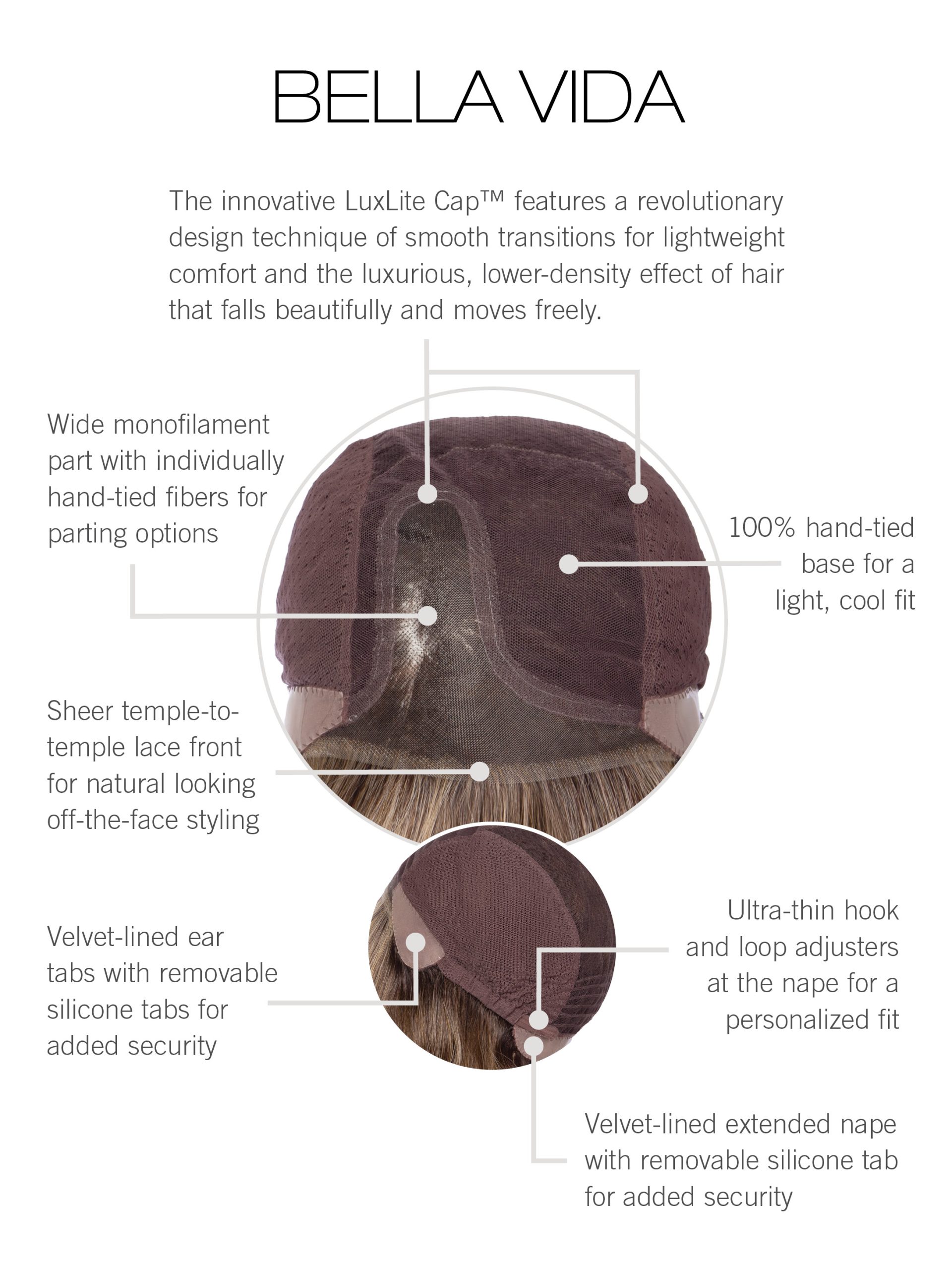 • New Luxlite Cap: made with a petite-average circumference and special stretch fabrics that can accommodate an average circumference.