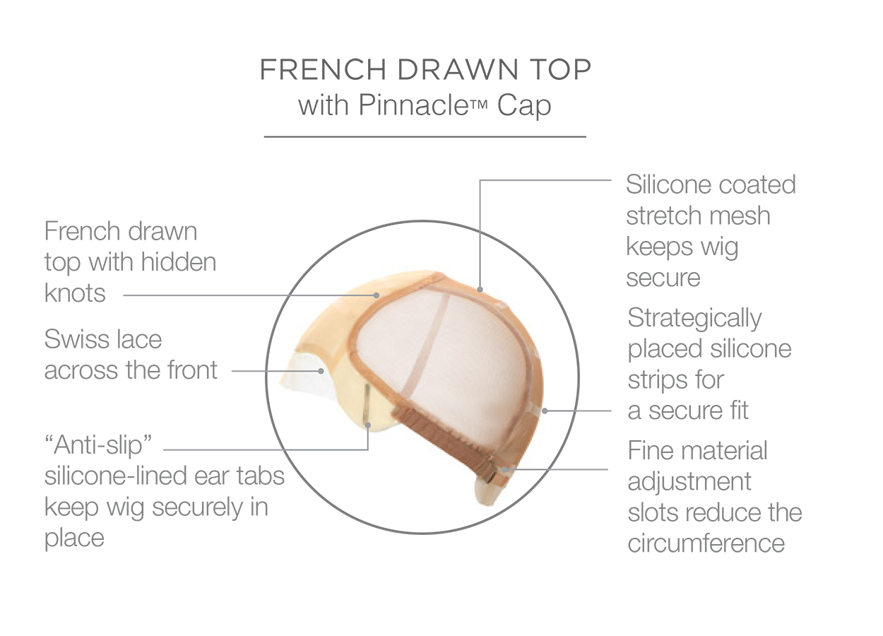The construction of Raquel Welch’s French Drawn top offers the ultimate in wig comfort.