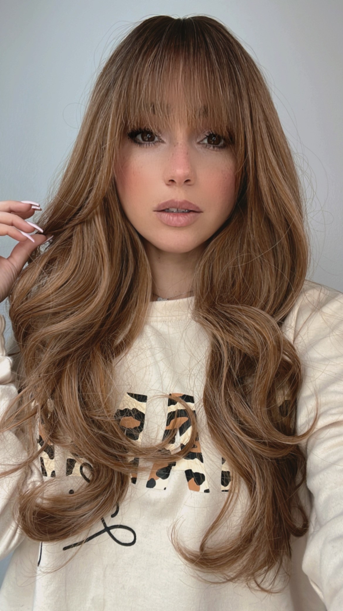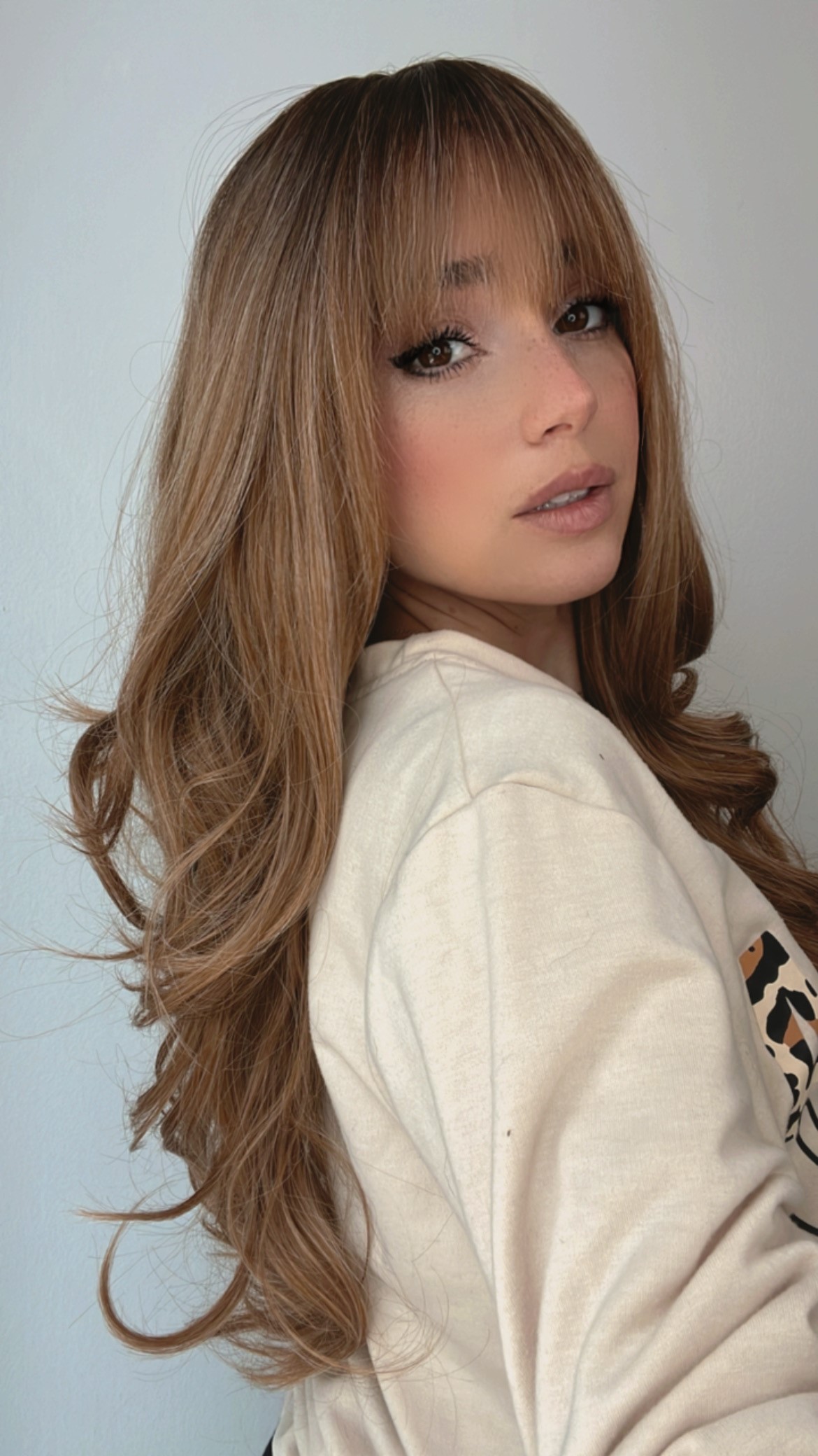 Introducing the stunning EllaRae Tessa Style Wig – your ultimate solution for a quick and stylish hair transformation. This beautifully crafted wig is designed in a sophisticated rooted dark blonde with highlights color, featuring a wavy, long-length layered cut complemented by chic bangs that frame the face elegantly.